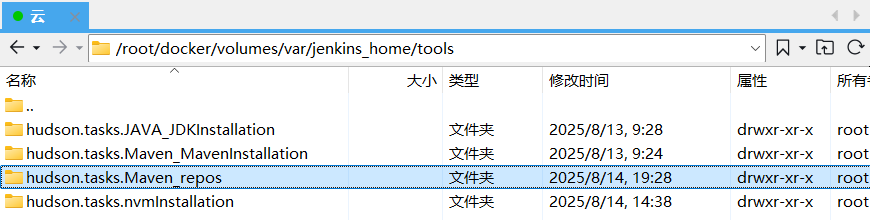 在图片中的路径下新建一个新的hudson.tasks.Maven_repos文件夹 (该文件夹后续用来当云仓库)