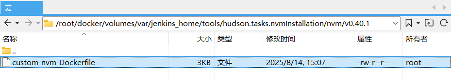 Linux>cd /root/docker/volumes/var/jenkins_home/tools/hudson.tasks.nvmInstallation/nvm/v0.40.1 (导航到该目录)