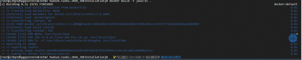 docker build -t java:11 . (基于当前目录下的 Dockerfile 构建一个名为 java:11 的 Docker 镜像)