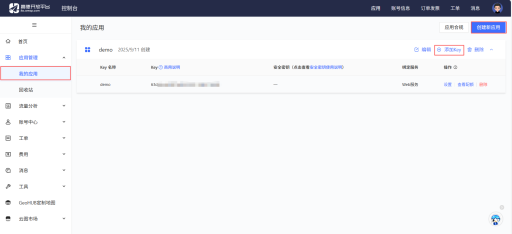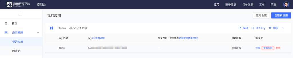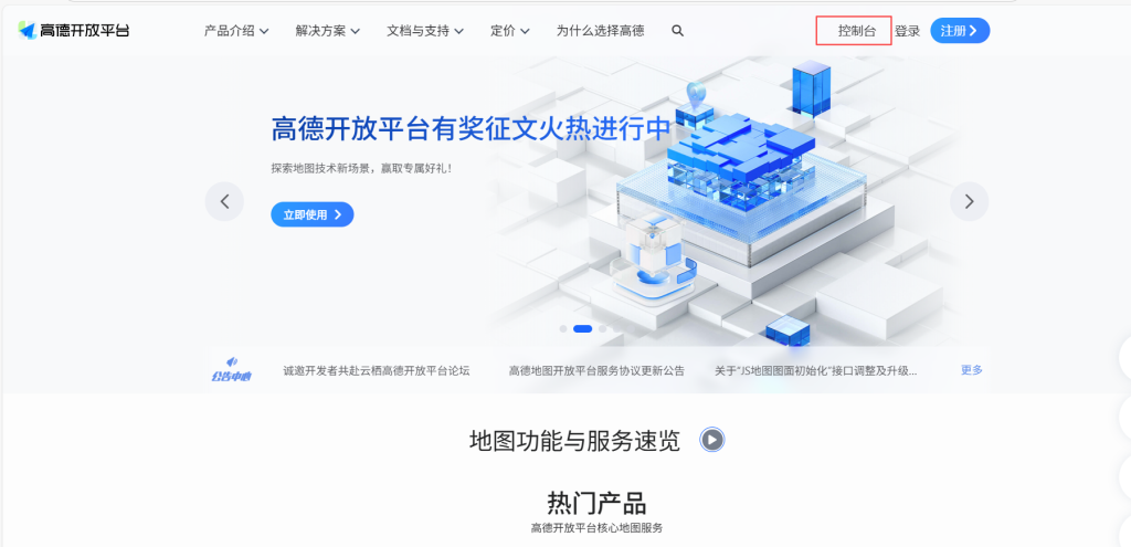 1、首先注册一个高德账号,获取一个高德地图的API key